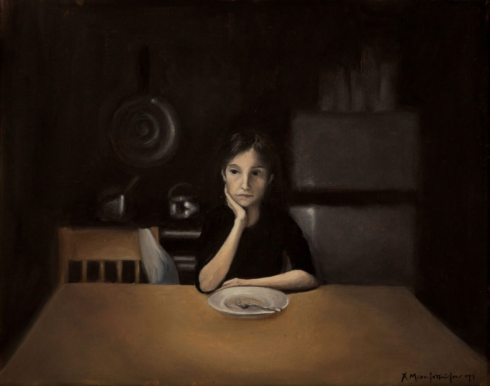 A woman waiting. Young figure, old soul. Weariness lying on her shoulders, her eyes facing her truth in emptiness.