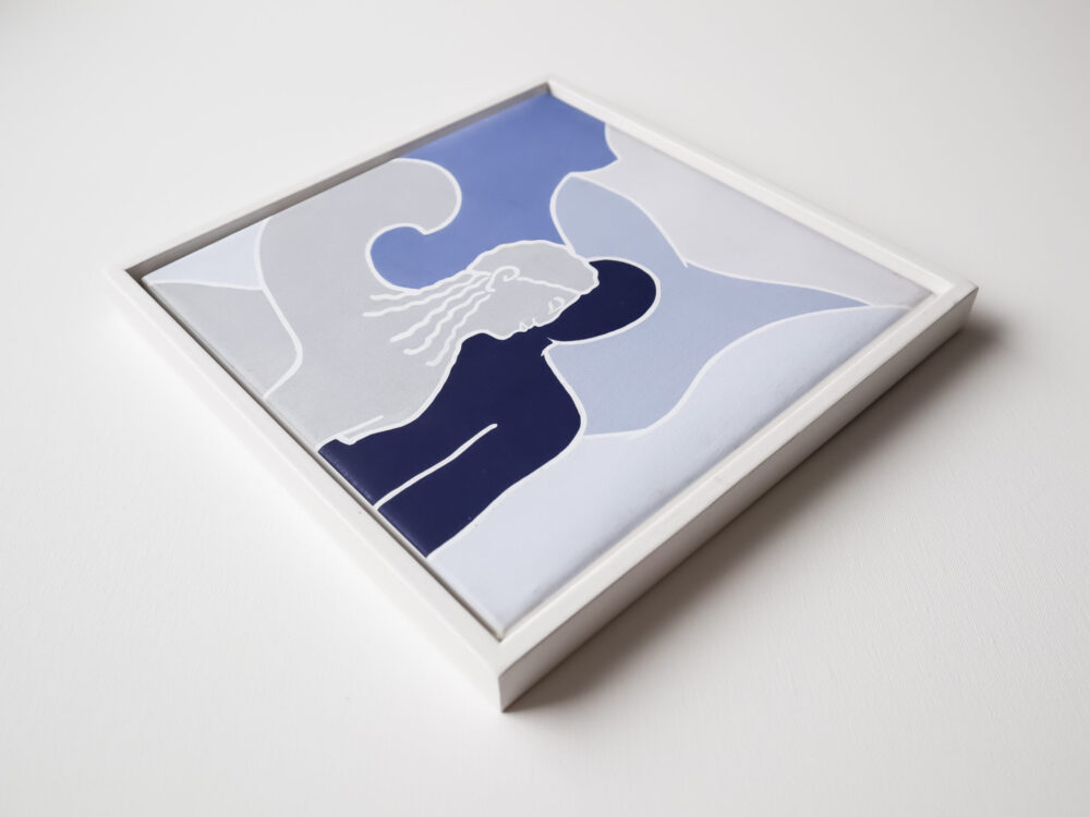 Framed in a minimalistic wooden hand crafted white frame 30×30 cm, made by Greek handcrafters.